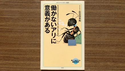進化生物学者 長谷川英祐さんの『働かないアリに意義がある』(メディアファクトリー新書 740円)には、『生態を観察すると7割のアリはボーとしており、1割は一生働かないことがわかってきた』との記述もある。さらにコロニーの長い期間の維持のために年齢に伴う労働内容の変化は『齢間分業』と呼ばれ、固体余命の短い年寄りアリは危険な仕事に『異動』してもらい、幼虫や子供世話は若いアリにしてもらう、ハチもそうだと。若い順の仕事からいくと、①育児卵の世話(たえず舐めていないと土壌菌にやられる)②巣の維持(巣の補修)③エサを取りにいく(一番危険を伴う・・人間や自転車に踏まれたり雨にやられる)。老齢アリは③の危険地へやられる。集団全体(コロニー)の維持には最適な種の保存につながる。人間界から見ると無慈悲。(同書38・39p)さらに(お馬鹿さんがいたほうが成功する)という興味深い章もある。