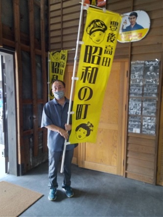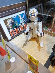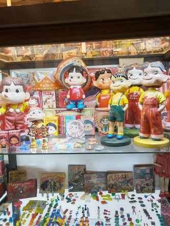 1枚1枚を凝視すると、昭和の風俗や怪獣や鉄人28号がいる。不二家のペコちゃんも女の子に大人気、私の好きだった大映のガメラシリーズや怒ると目が充血する大魔神もいい。男はつらいよのポスターもたくさん飾っていた。店の女主人が「福岡の●●さんの所有物なんですが、集めた時期が骨董番組もなくて自由に売り買いができた。テレビで鑑定の番組が始まると集めるのが大変であったと」今回の展示物は、実は倉に入っているのは展示されている10倍はあるとのこと。福岡市在住の収集家が、この街の活性化を目途に協力をした次第だ、。私の行った8月30日は韓国からきたツアー客がぽつりぽつり来ていた。