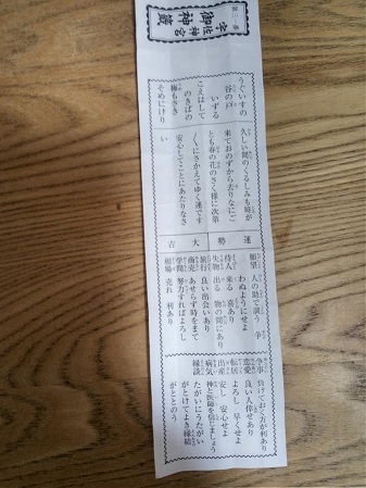 その向こうに本堂が。右側にお守りが売っていたので5個買った。おまけにおみくじを引いた。娘は中吉、私は大吉であった(ヤッホー)